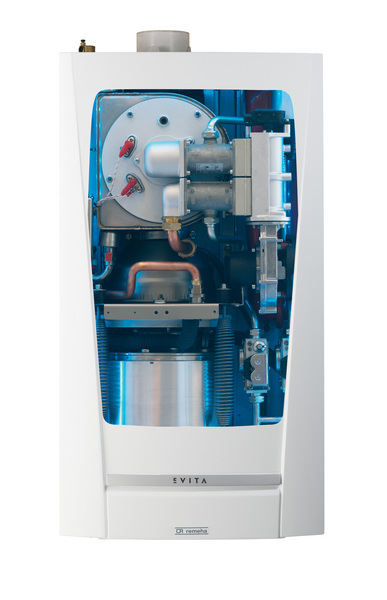 Der Remeha eVita, ein stromerzeugender Gas-Brennwertkessel. Für Wärme, Warmwasser und Strom. Ideal für den Einfamilienhausbereich bei einer Leistung des Stirling-Motors mit 5 kW thermisch und 1 kW elektrisch und dem Zusatzbrenner von 18 kW.